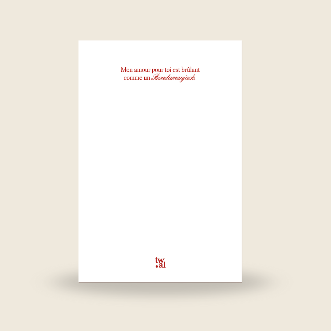 - La carte "Tchè mwen ka brilé baw" dans son enveloppe